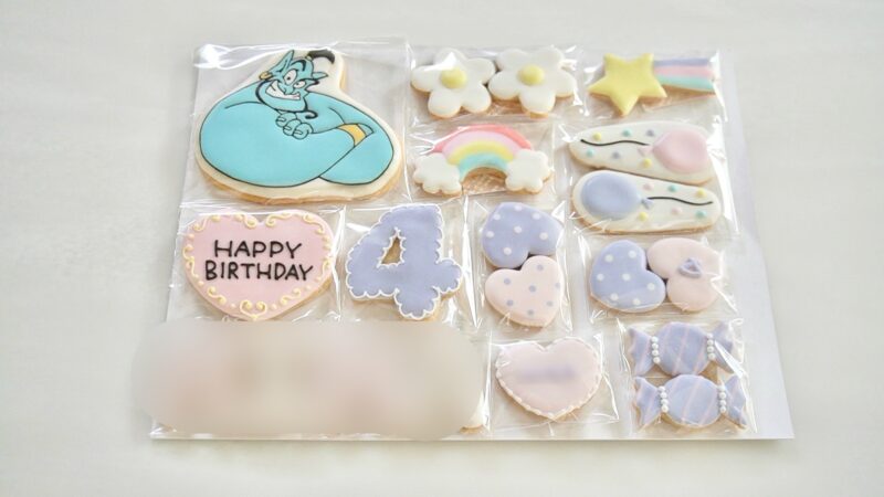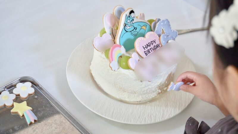 我が家は毎年娘がその歳に好きなキャラクターのアイシングクッキーをオーダーしてお誕生日ケーキに飾っています。