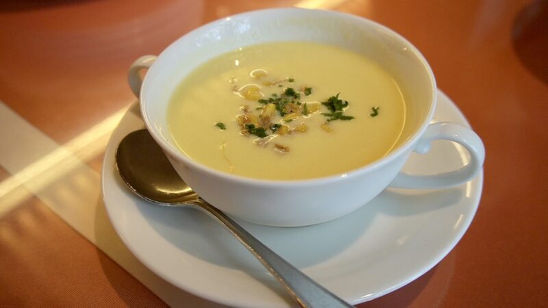 まずは娘用に頼んだとうもろこしの冷製スープ(¥880)。
