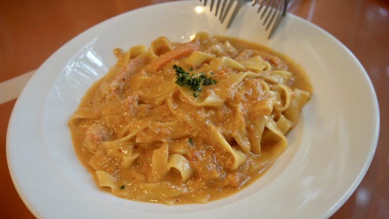 濃厚オマールソース 紅ズワイガニのタリアテッレ(¥2,400)。