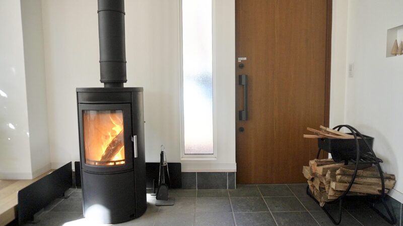 薪ストーブとの相性も良くて土間玄関がすっきり♩